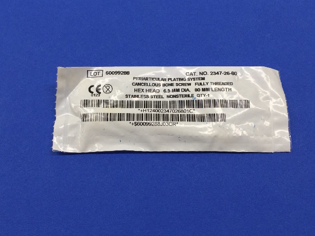 Zimmer 2347-26-80 Cancellous Bone Screw Fully Theaded Hex Head 6.5mm x 80mm