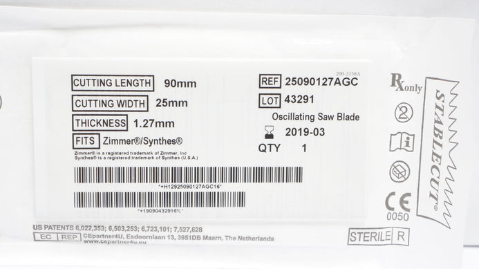 Zimmer 25090127AGC STABLECUT Surgical Saw Blade 90 x 25 x 1.27mm