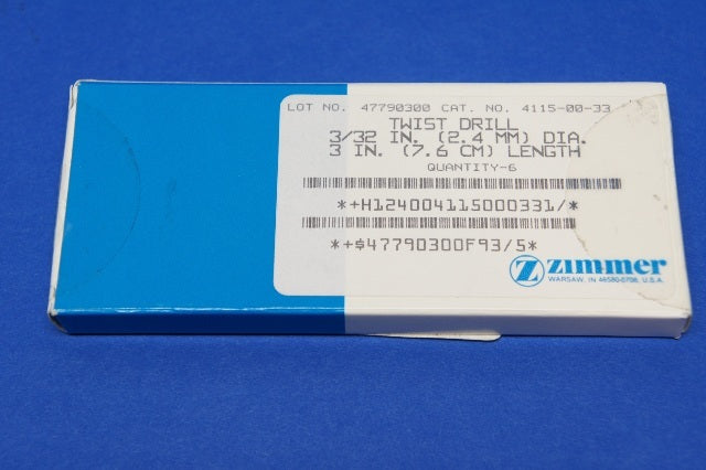 Zimmer 4115-00-33 Twist Drill 3/32inch X 3inch ~ Box of 6
