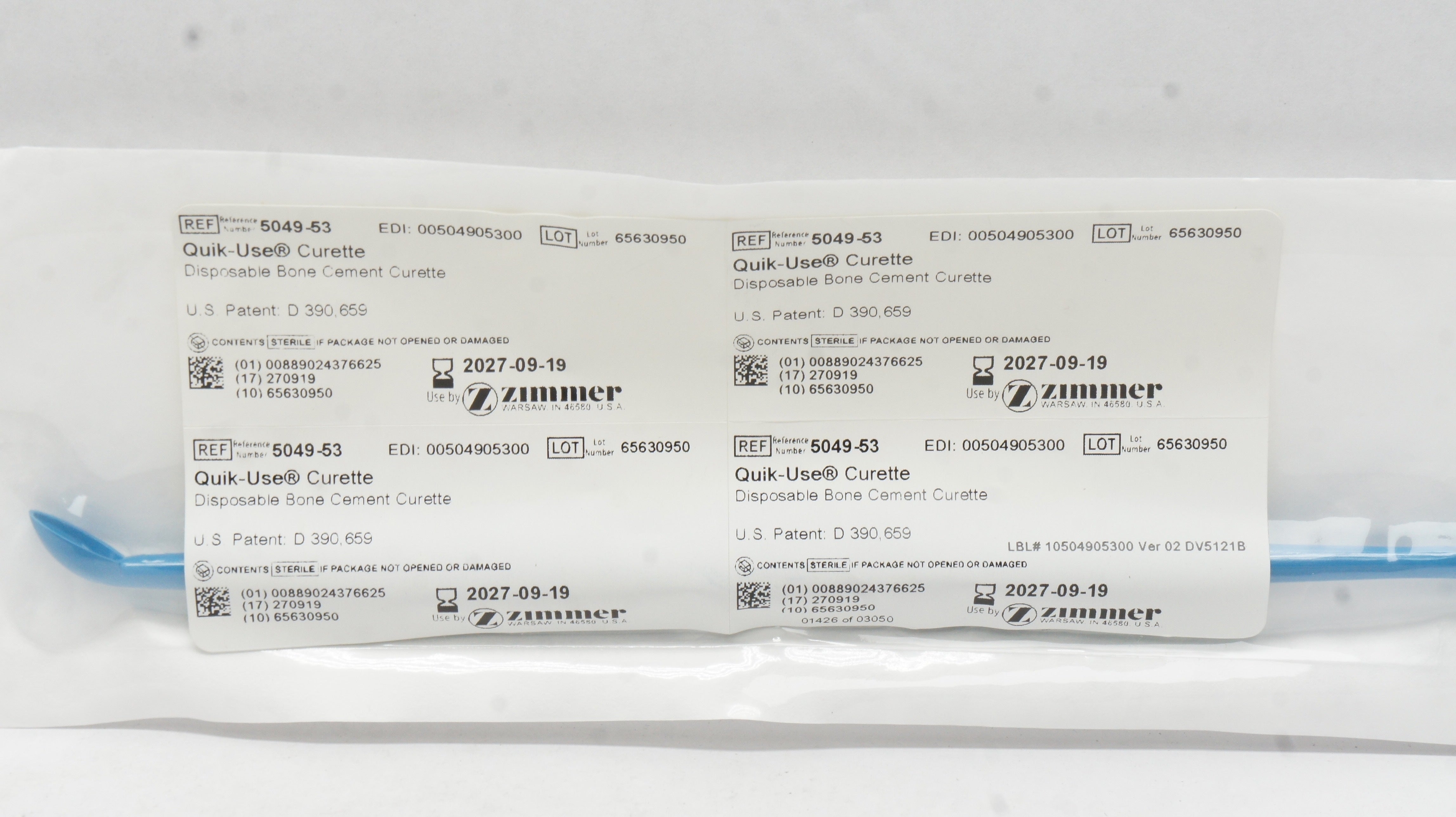 - Zimmer 5049-53 Quik-Use Disposable Bone Cement Curette