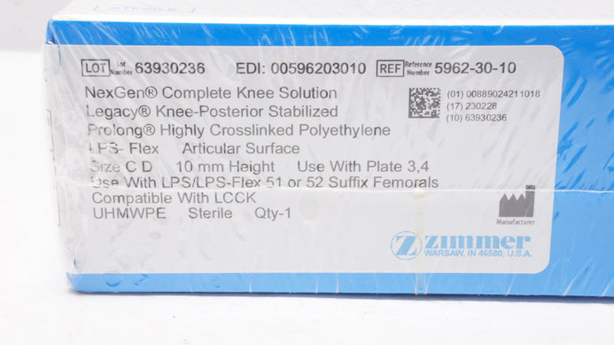 Zimmer 5962-30-10 Prolong Highly Crosslinked Polyethylene, Size C/D 10mm (x)