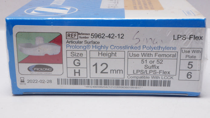 Zimmer 5962-42-12 Prolong Highly Crosslinked Polyethylene Size G H (x)