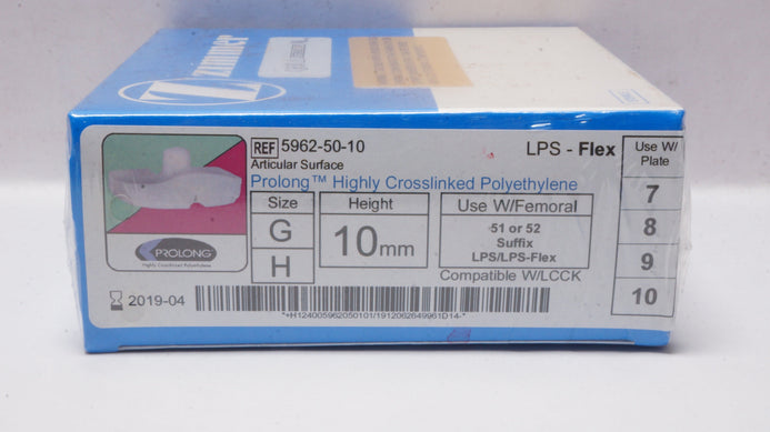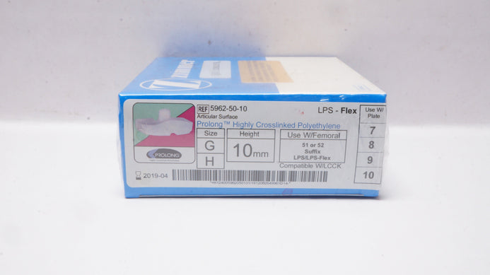 - Zimmer 5962-50-10 Articular Surface Prolong Highly Crosslinked Polyethylene (x)
