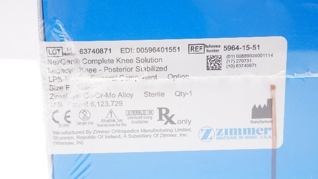 - Zimmer 5964-15-51 NexGen Complete Knee Solution Femoral Component Left, E