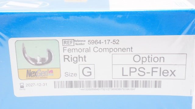 - Zimmer 5964-17-52 NexGen Comlete Knee Solution Femoral Component Right Size G