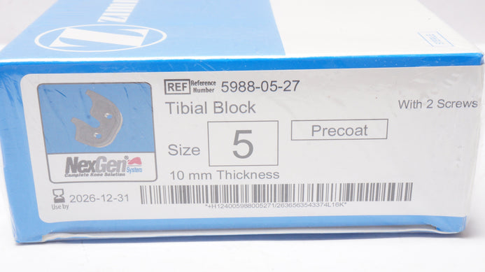 Zimmer 5988-05-27 NexGen Tibial Block w/2 Screws, Size 5 Precoat 10mm