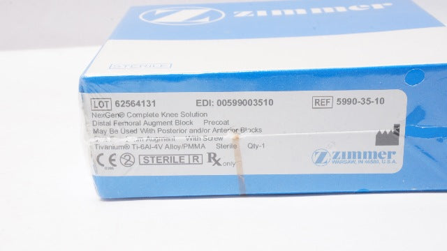 - Zimmer 5990-35-10 NexGen Distal Femoral Augment Block Precoat 5mm, Size E