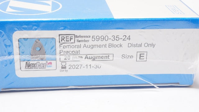 Zimmer 5990-35-24 Femoral Augment Block Distal Only Precoat, Size E, 20mm