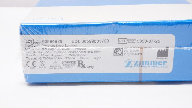 - Zimmer 5990-37-20 Distai Femoral Augment Block Precoat 10mm Size G