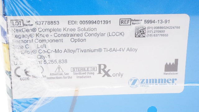 Zimmer 5994-13-91 NexGen Legacy Femoral Component, Left, Option LCCK, Size C