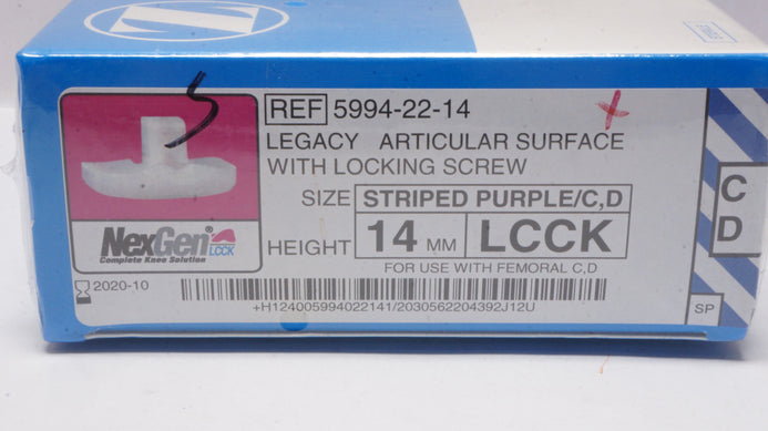 Zimmer 5994-22-14 NexGen Legacy Articular Surface W/Locking Screw (x)