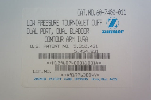 Zimmer 60-7400-011 Low Pressure Tourniquet Cuff Dual Port, Dual Bladder