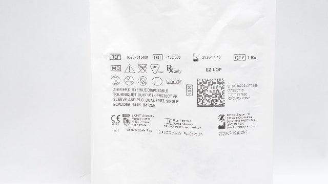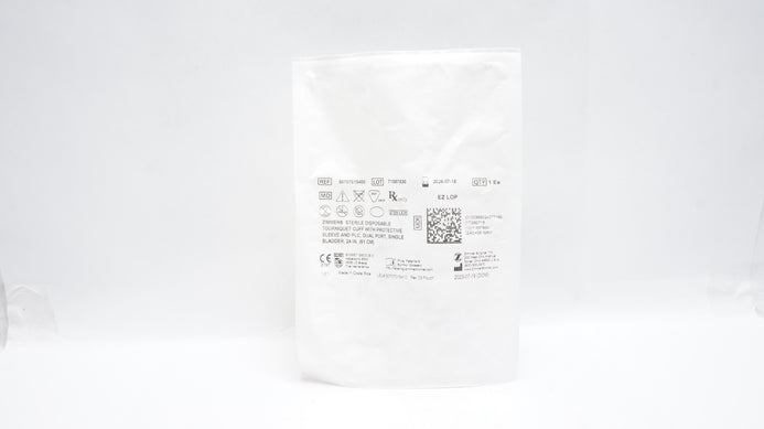 Zimmer 60707015400 Sterile Disposable Tourniquet Cuff w/ Protective Sleeve & PLC, Dual Port, Single Bladder, 24inch