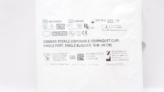 Zimmer 60707500300 Disposable Tourniquet Cuff Single Port & Bladder, 18inch