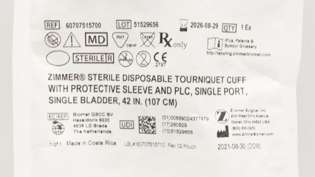 Zimmer 60707515700 Tourniquet Cuff w/PLC Single Port Single Bladder 42inch