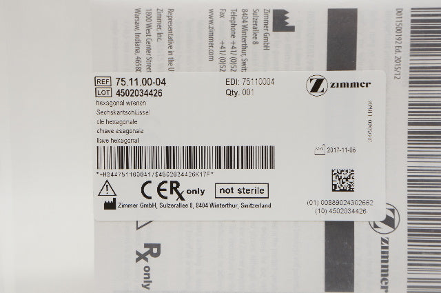 - Zimmer 75.11.00-04 Hexagonal Wrench