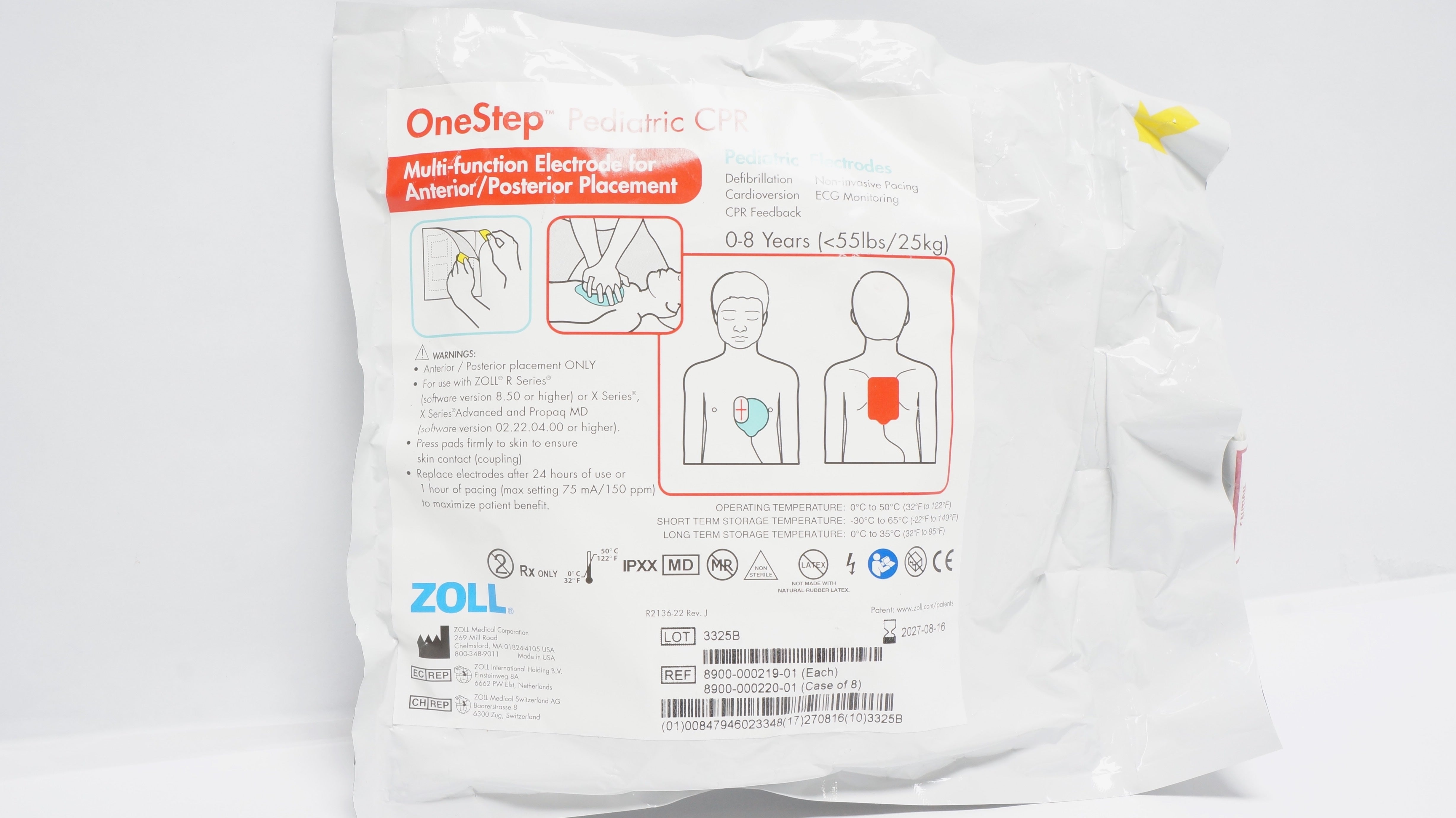 - Zoll 8900-000219-01 OneStep Pediatric CPR Multi-Function Eletrode 0-8 Years